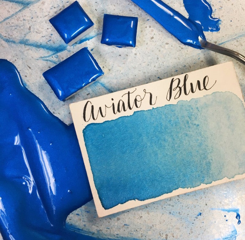 Aviator Blue (Pearlescent) Half Pan Watercolor: Stoneground Paint Co.