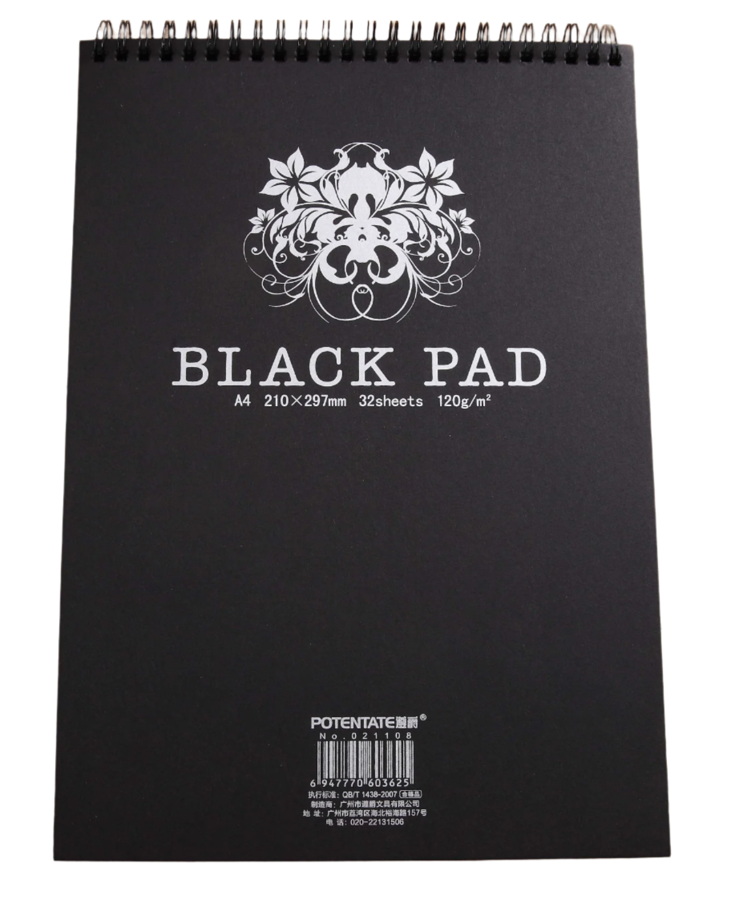 A fun pad filled with black paper, perfect for gel pens and opaque markers. Heavy-duty double spirals help keep snagging to a minimum.