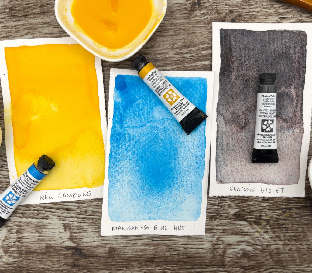 Capture the last light of day with this dreamy, poetic palette. Golden New Gamboge reflects a fading sun, Manganese Blue Hue evokes cooling skies, and Shadow Violet brings soft, mysterious shadows. A perfect trio for twilight scenes, gentle transitions, and moody, emotive paintings.