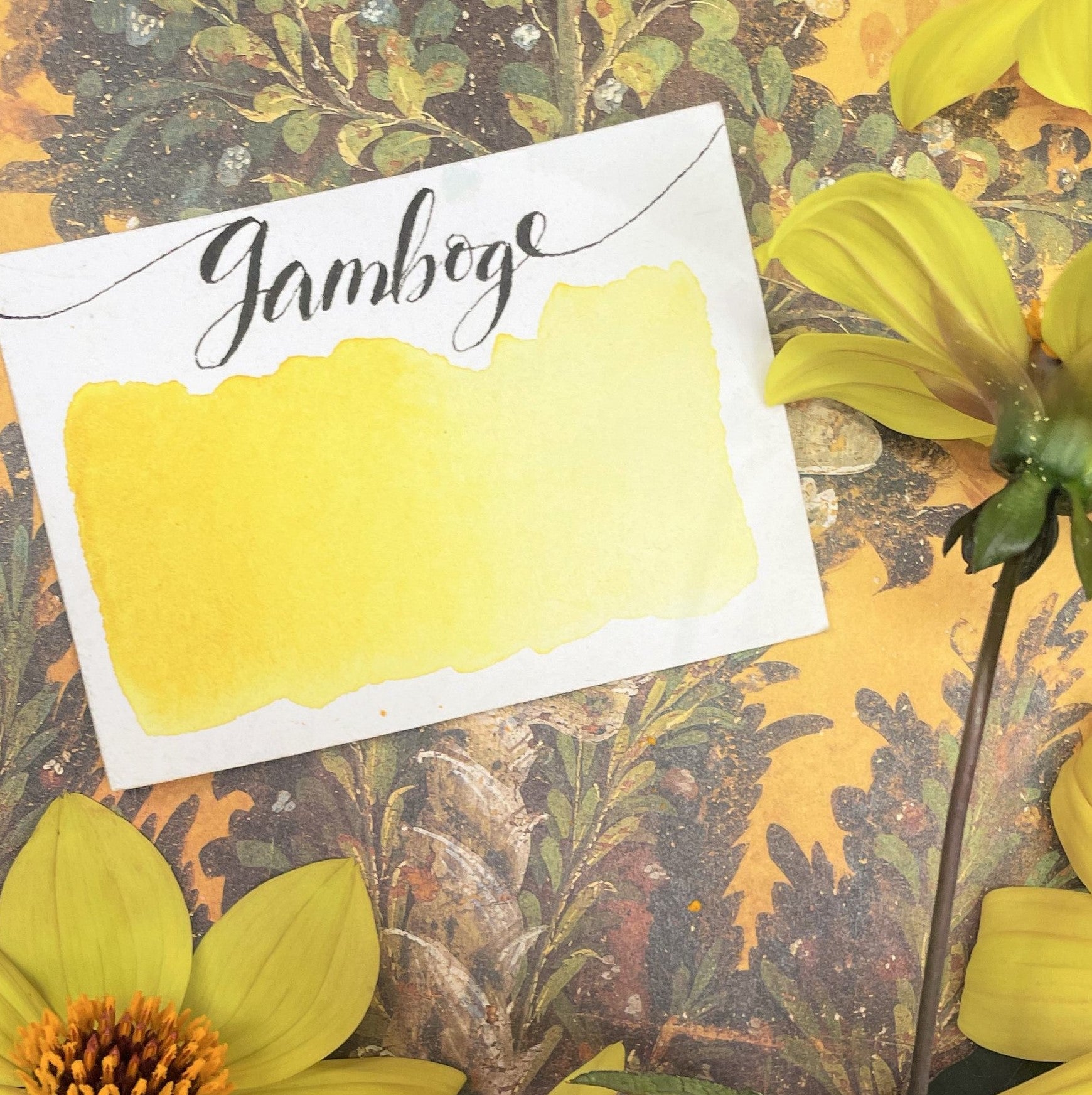 Gamboge lends itself beautifully to a variety of subject matter and its transparent nature is highly valued among floral and botanical artists. Gamboge is almost mustard yellow when applied full strength but when dilute it creates a range of warm, golden yellows.