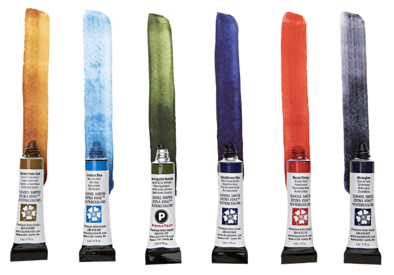Set of six, 5ml tubes of Daniel Smith watercolors.