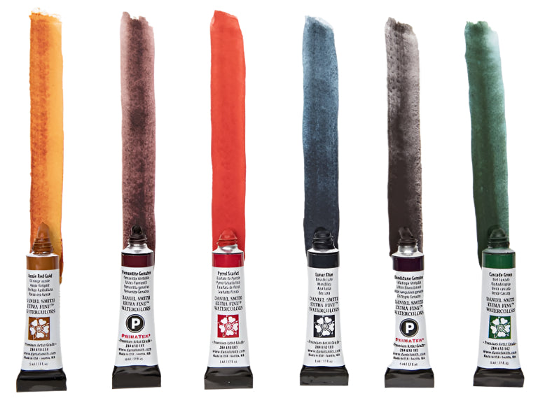 Set of six, 5ml tubes of Daniel Smith watercolors.