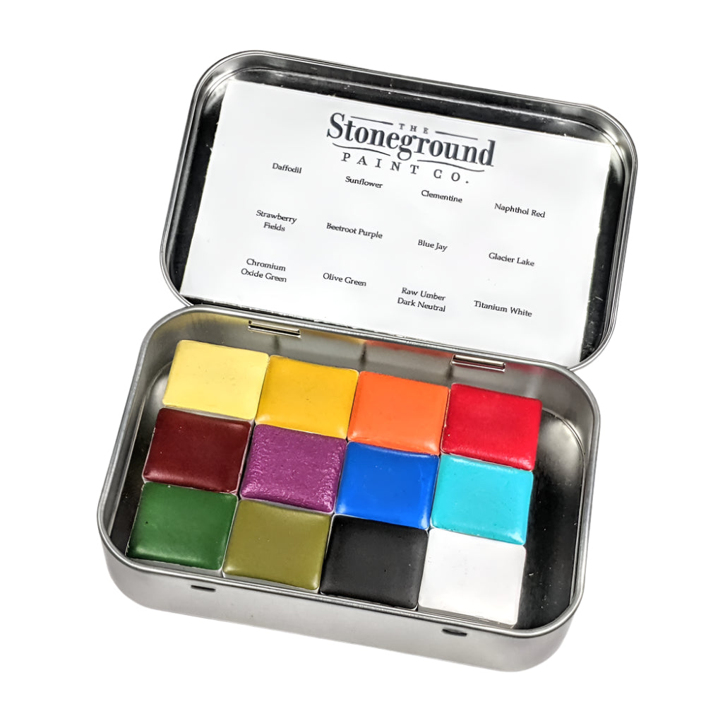 Gouache 12 Mint Gardener Stoneground Paint Co. Metal 1/2 Pan Palette
