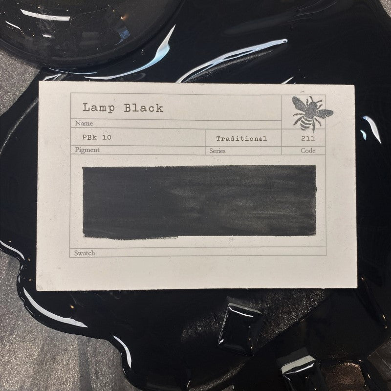 Paint Makers Notes: Lamp Black is the oldest known black pigment and has been used extensively throughout history. Historically this pigment was produced from the residue left over from burning oil lamps.