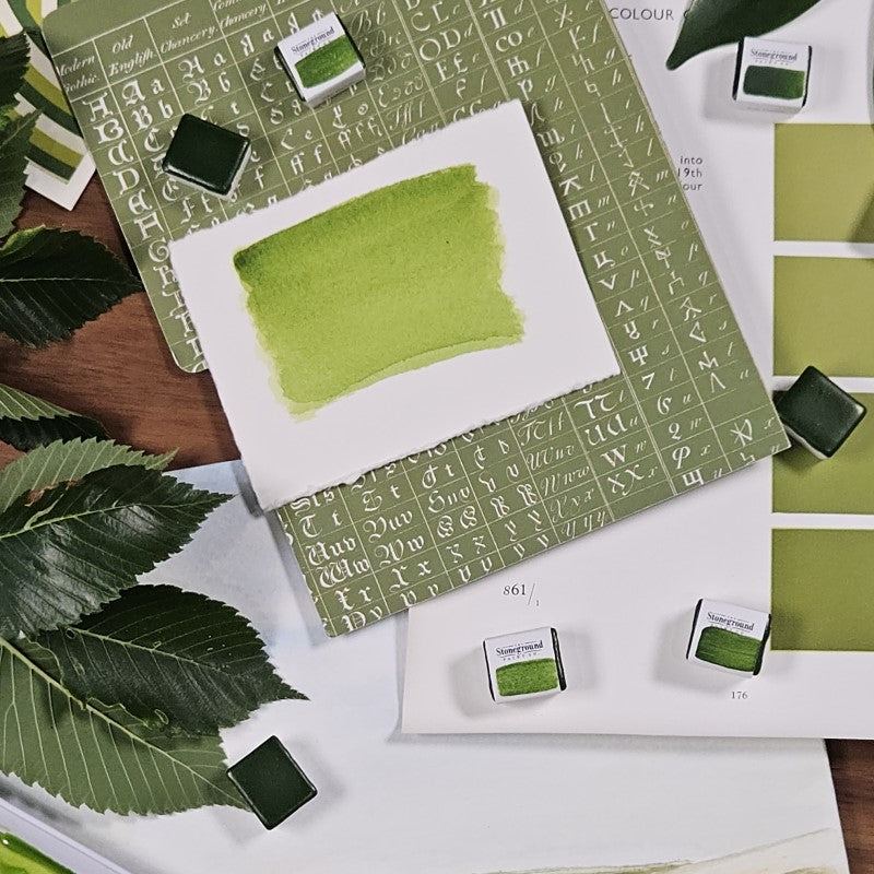 Sap Green Half Pan Watercolor: Stoneground Paint Co.