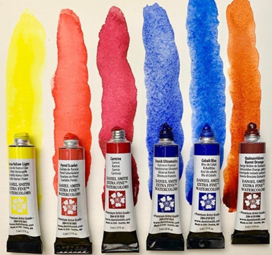 Set of 6, 5ml tubes of Daniel Smith watercolors.