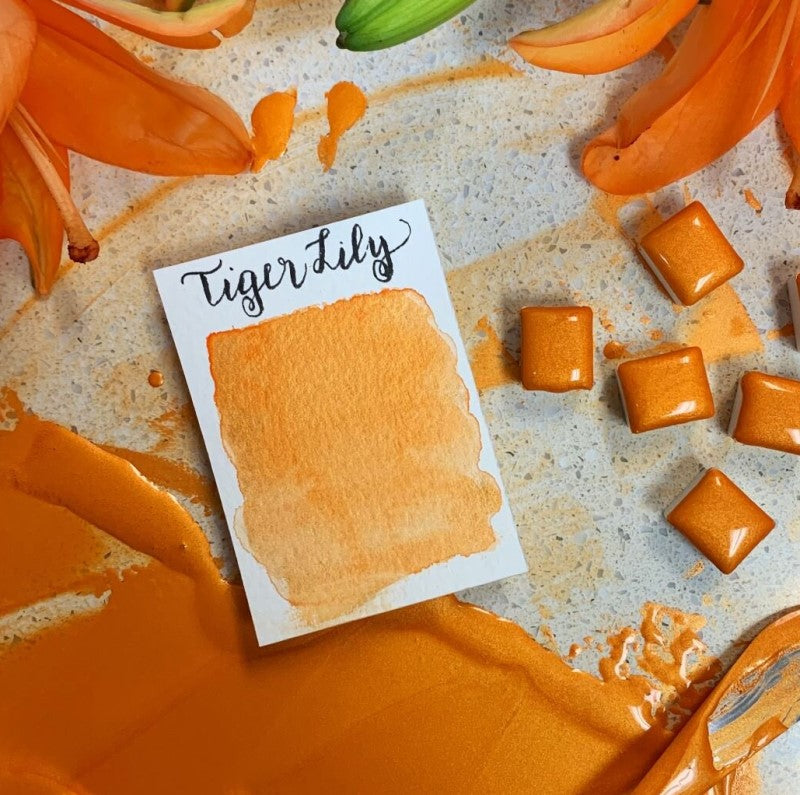 Tiger Lily (Pearlescent) Half Pan Watercolor: Stoneground Paint Co.