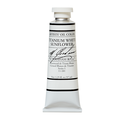 Titanium White Sunflower is somewhat warmer and more opaque than our regular Titanium White. A zinc free white ground in an historic oil with lush handling characteristics.